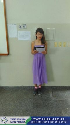 Trabalhando com os mais variados contos. Momento de leitura, reflexão e dramatização. A Professora Tatiane Payer e as turmas de 6º e 8º anos.